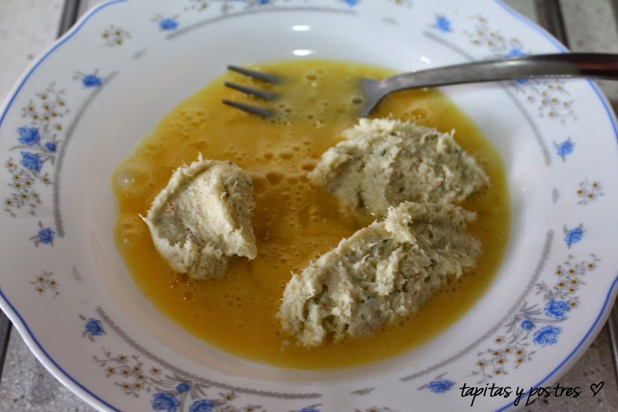 Sacamos porciones con una cuchara y las pasamos por el huevo batido.