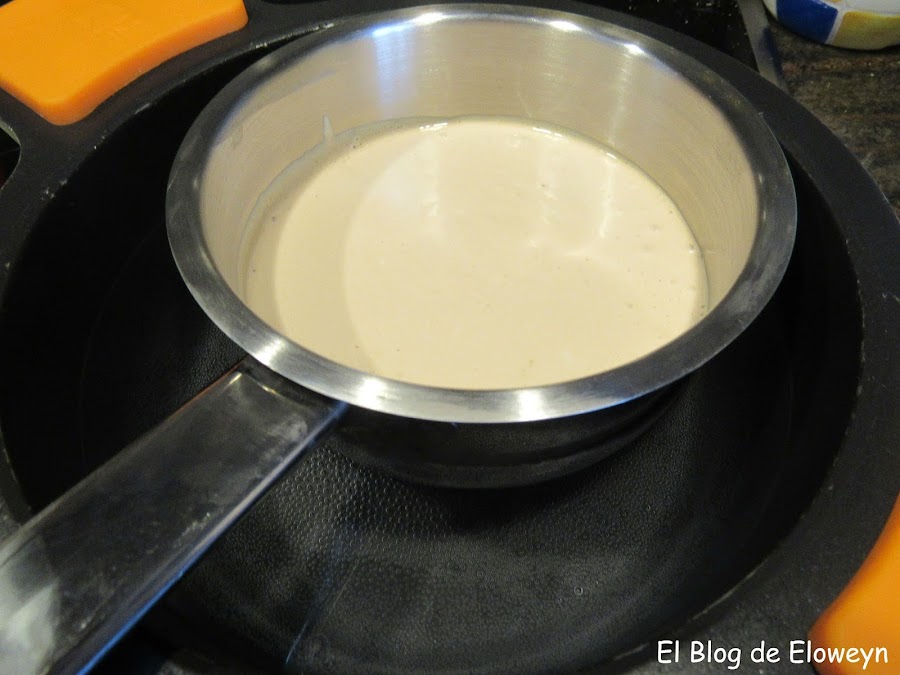 A continuación colocamos la mezcla en un cazo y la calentamos al baño María hasta que haya espesado.