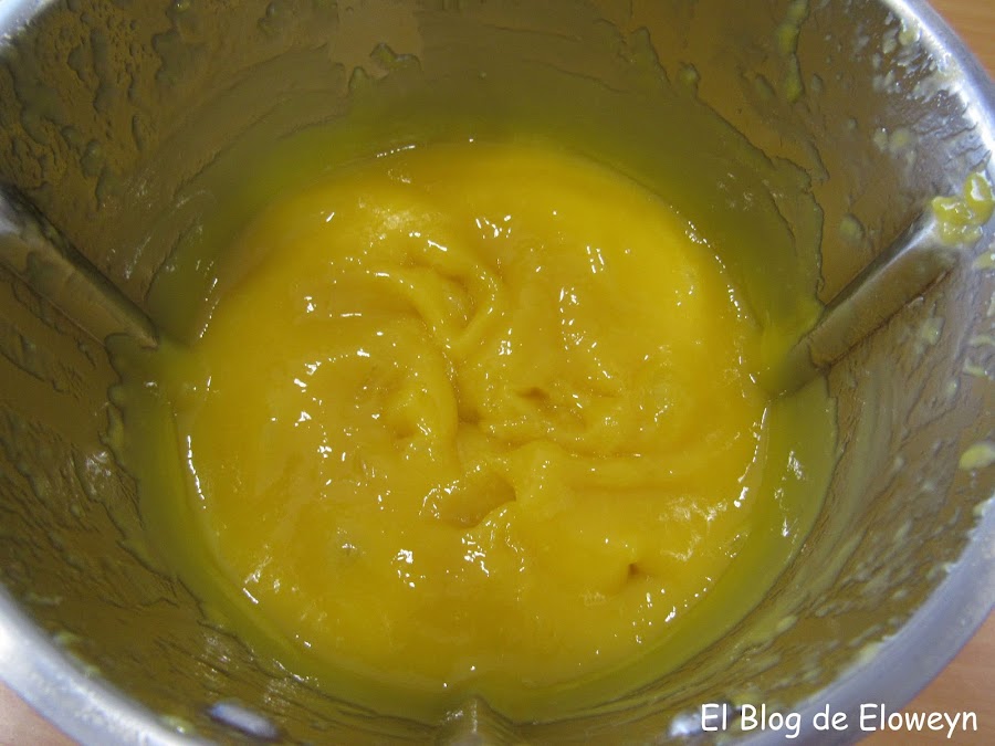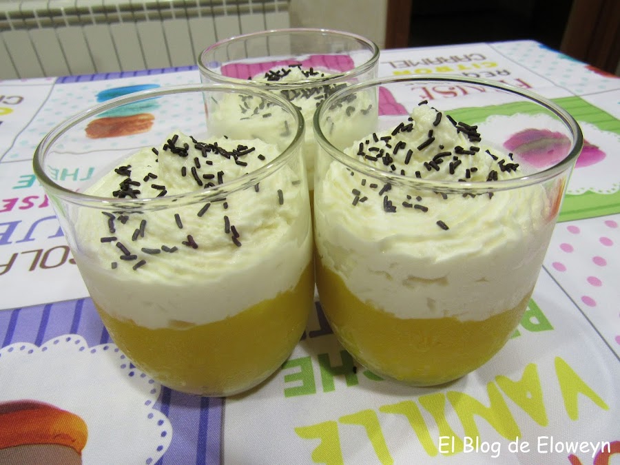 Cuando vayamos a montar los vasitos, ponemos primero la crema de mango.