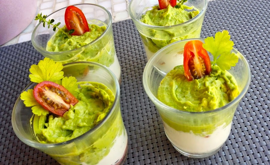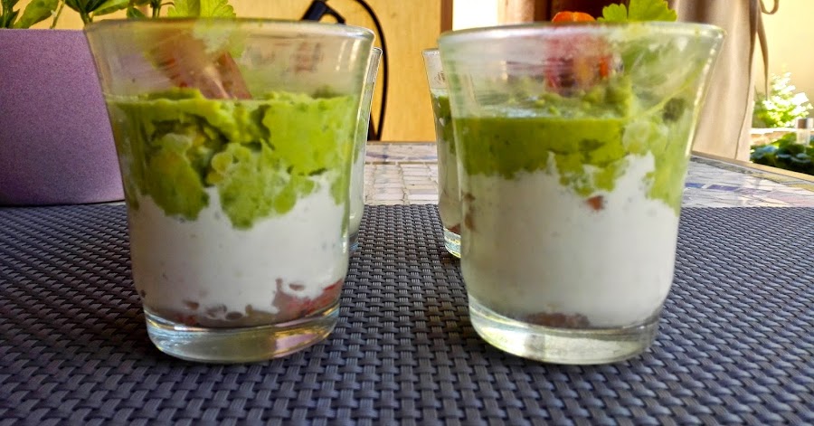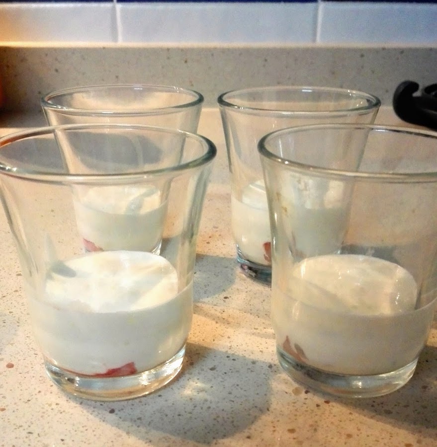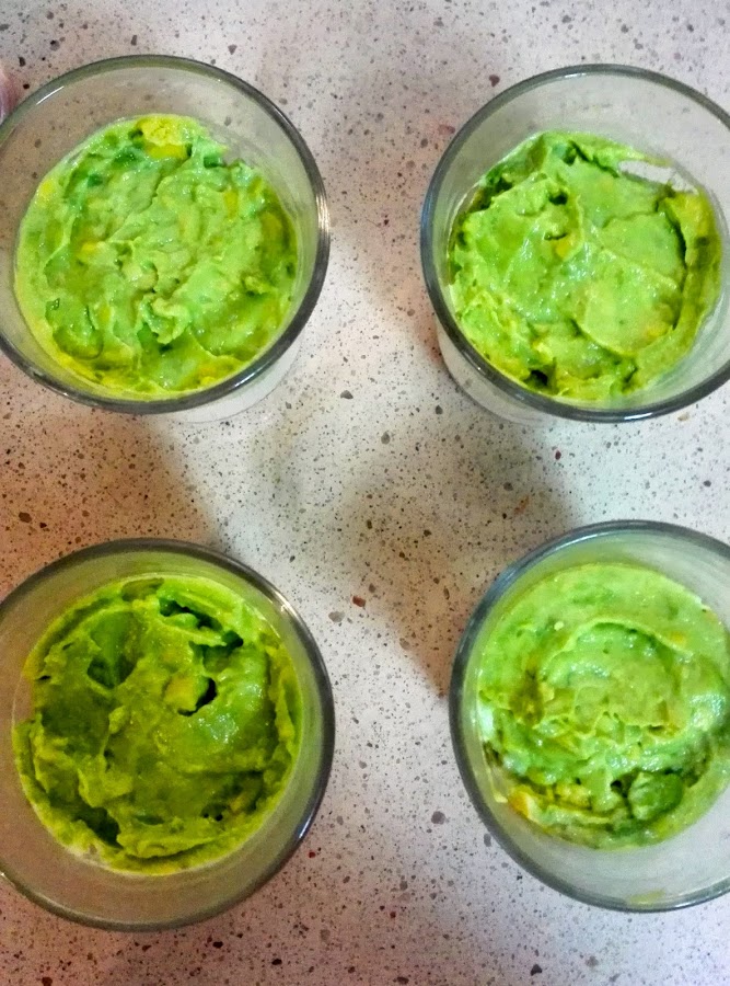 Colocamos la mezcla encima de los vasitos con las gambas ya puestas.