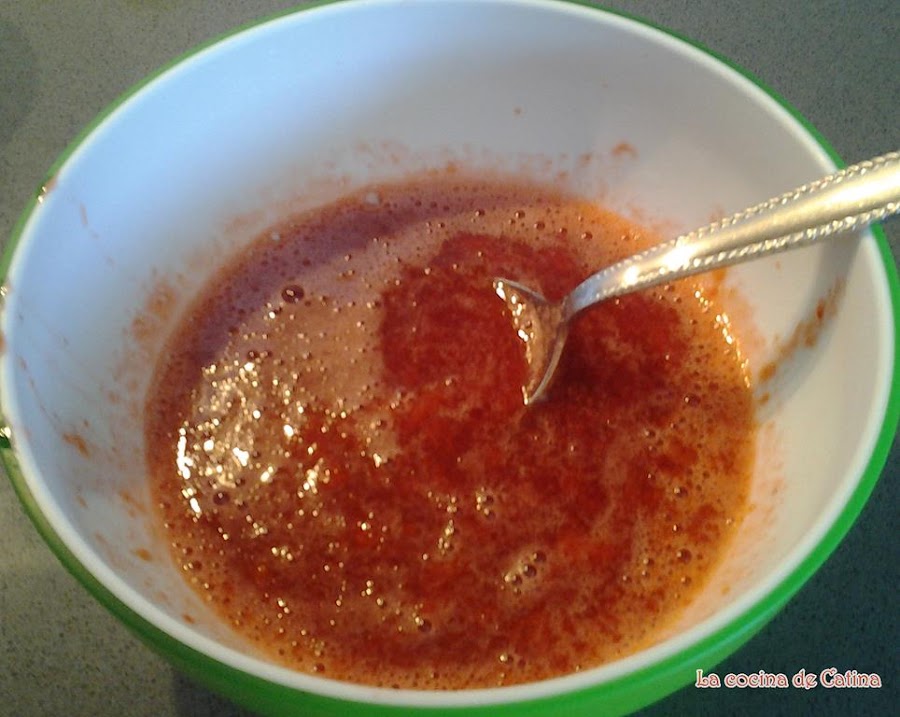 Hidratar la hoja de gelatina en agua fria durante 10 minutos. Escurrirla.
