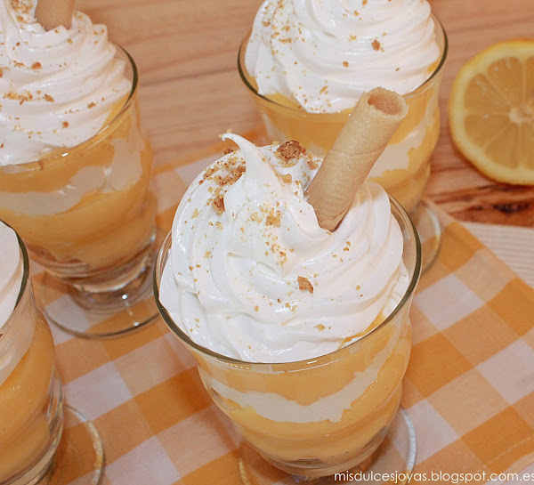 Incluso si no sois muy amantes del limón, lo podéis sustituir por naranja (zumo y ralladura de naranja), y de esta forma se consiguen unos deliciosos vasitos de merengue y Orang Curd (crema de naranja).