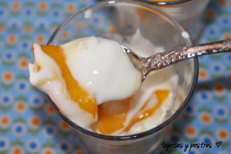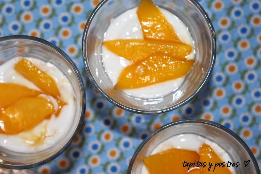 Como ya no es hora de llevar el desayuno a mi vecina, decido hacer la Paulova para la merienda. Para adornarla elijo caramelizar un melocotón, como no tenía fresas, es una opción distinta.