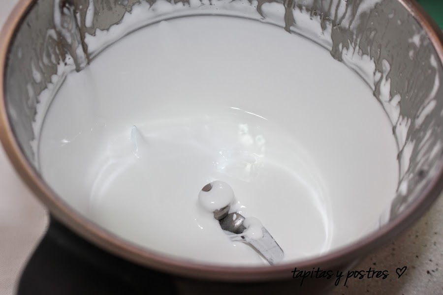 Si os sale merengue, usadlo para alguna receta, para esta os debe quedar una crema espesa como esta.