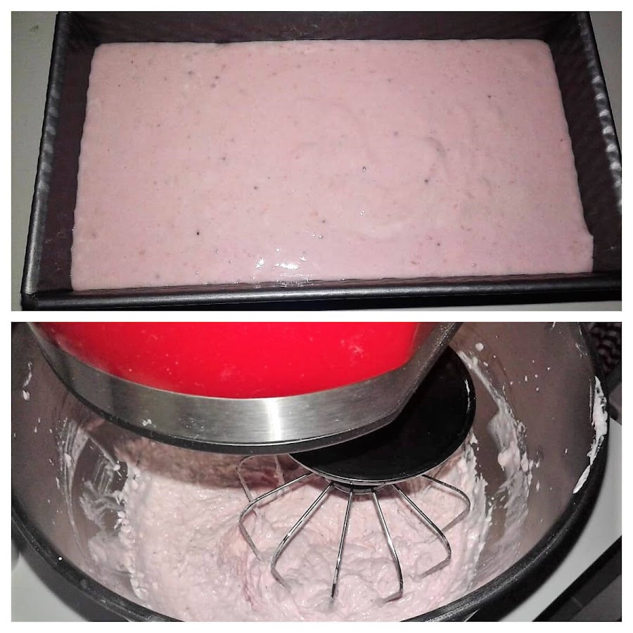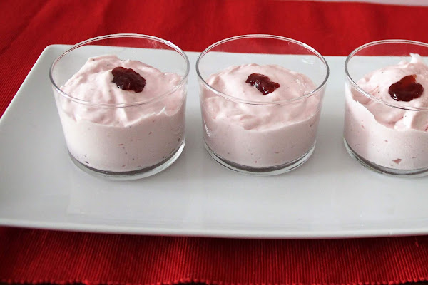 Luego mezclar con una espátula las tres preparaciones; las fresas, el yogur y la nata montada (crema de leche).