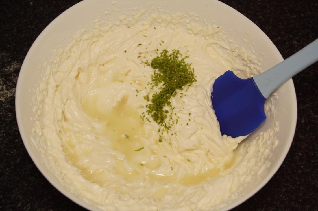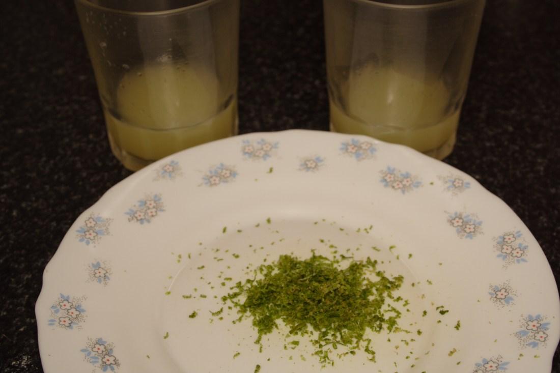 Incorporamos el zumo de las otras 2 limas y la ralladura reservada, mezclamos suavemente.