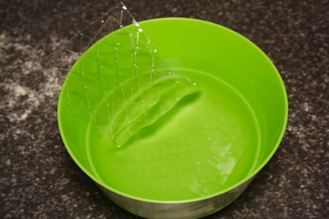 Consejo: Lo he hecho de víspera para que esté bien cuajada la gelatina y bien fresquito. Como comento, pondremos la menta picadita en la gelatina cuando ésta esté completamente fría y justo antes de cubrir la crema de queso. También comento que la receta original lleva 200 gr de galleta, no sé, pero a mí me sobro mucha.