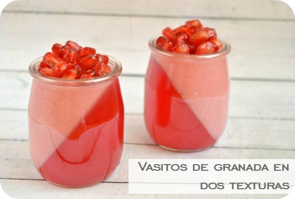 Aquí estoy un mes mas con la receta para el reto "Yo dulce y tu salado" que hago junto a Patypeando y en esta ocasión la elegida a sido un vasitos de granada con dos texturas diferentes.Como ya sabes el tema de este mes eran los colores y yo me he decantado por el rojo y por una fruta de temporada, la granada.