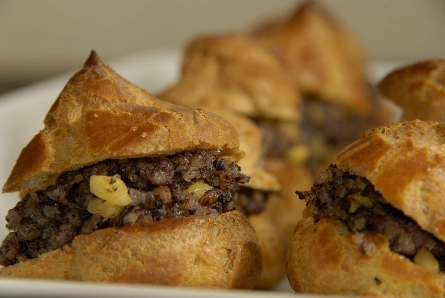 Profiteroles de morcilla y manzana