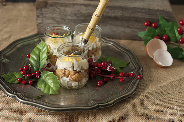 Pues bien, este año vais a triunfar vosotros con estos huevos rellenos desestructurados, presentados en vasitos, pero que al probarlos y mezclarlos parece que os habéis llevado un huevo relleno a la boca. Aunque la presentación es mucho más sofisticada y elegante de comer (os habéis mirado al espejo mientras os metéis en la boca un huevo relleno entero, ja,ja,ja, seguro que a nadie se le ocurre hacerse un selfie de esa guisa).