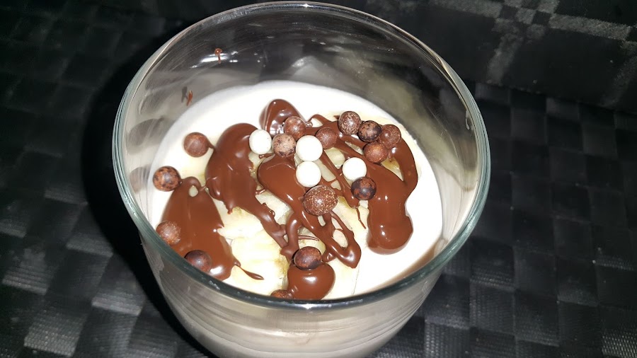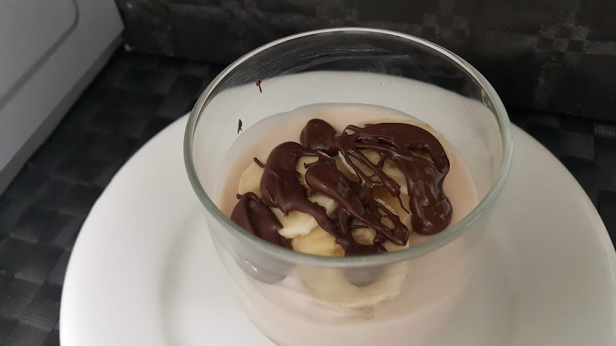 Llenamos el vaso hasta 3/4 con la mousse de plátano y dejamos en la nevera mínimo 4 horas.