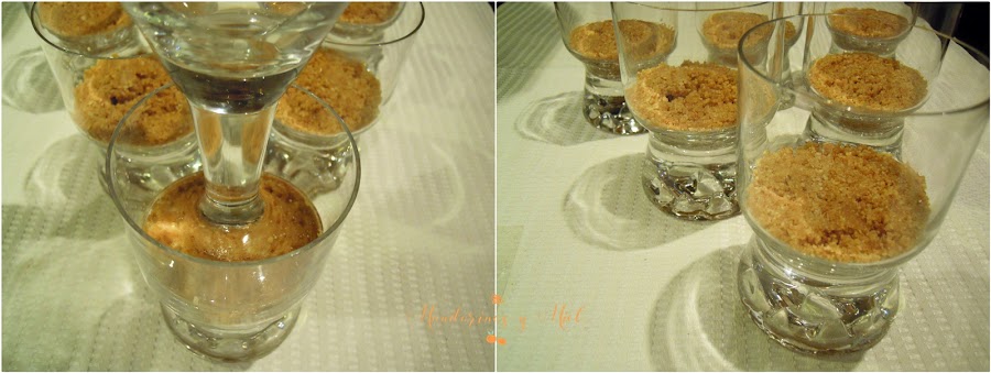 Les he preparado el postre individual, y es que cada vez me gusta más, me encanta sacar vasitos rellenos de algún dulce y ponerlos delante de cada uno de ellos, te aseguro que les impacta y te lo valoran mucho......total, que quedas genial!!