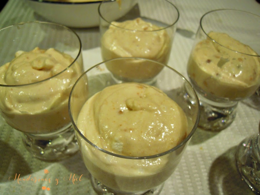 Cuando entré en su blog a buscar una receta dulce (siempre voy a lo mismo) me gustaba todo...que cosas más ricas tiene; pero en cuanto vi esta mousse de turrón ya no busqué más porque me iba genial para la comida familiar, así se lo comen ellos y no yo...