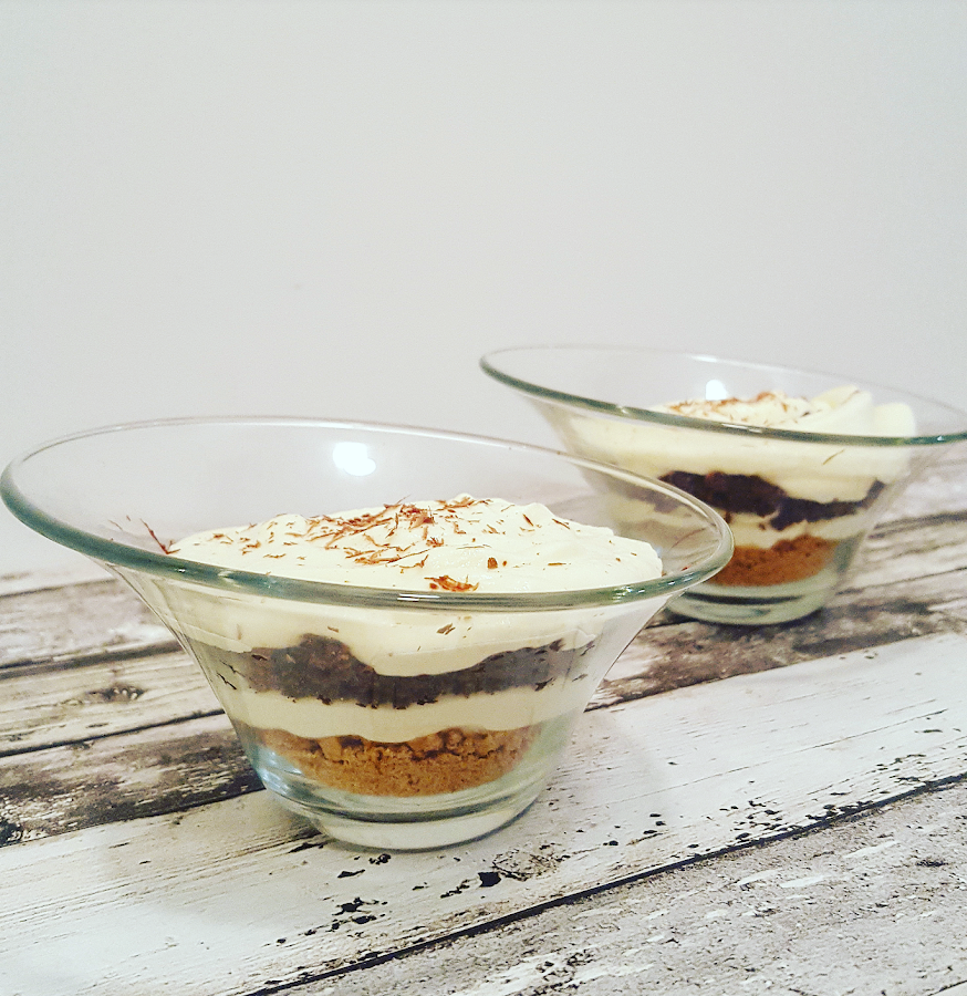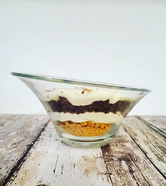 Son unos vasitos de queso, chocolate y galleta.