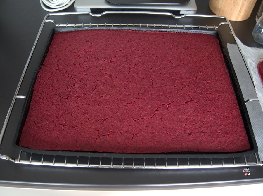 Podéis seguir la preparación del bizcocho en esta receta publicada en el blog Red Velvet natural (hacer clic aquí para verla).