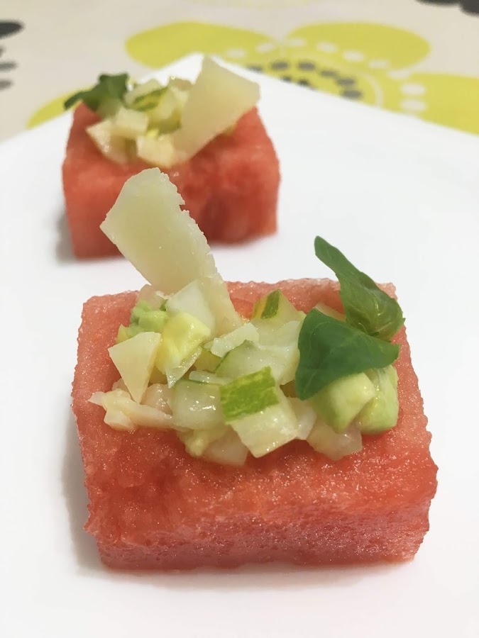 Hoy os traigo un aperitivo súper refrescante y muy vistoso para preparar cuando tengáis invitados, ¡seguro que les encanta la combinación de sabores!
