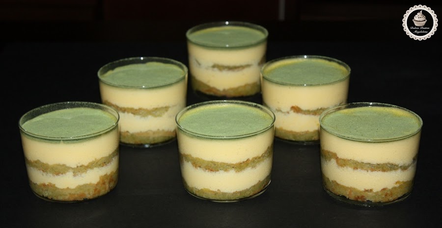 En primer lugar, mojamos los bizcochos en el té, los colocamos en el vasito, cubrimos con una capa de la crema, ponemos de nuevo unos bizcochos, y finalmente otra capa de crema. Y así con los 6 vasitos. Una vez montados los llevamos al frigorífico al menos 4 horas. Yo personalmente los hago el día anterior.