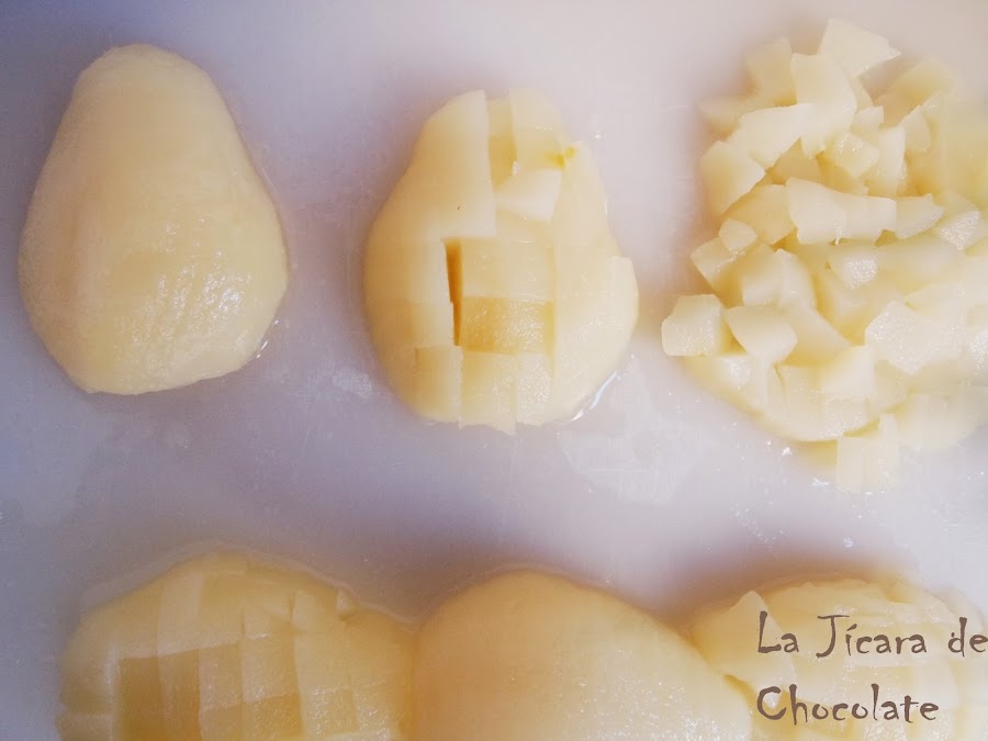 1. Cortamos la pera en trozos del tamaño que más nos guste.