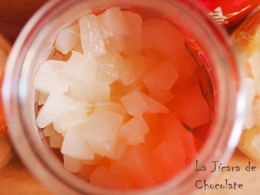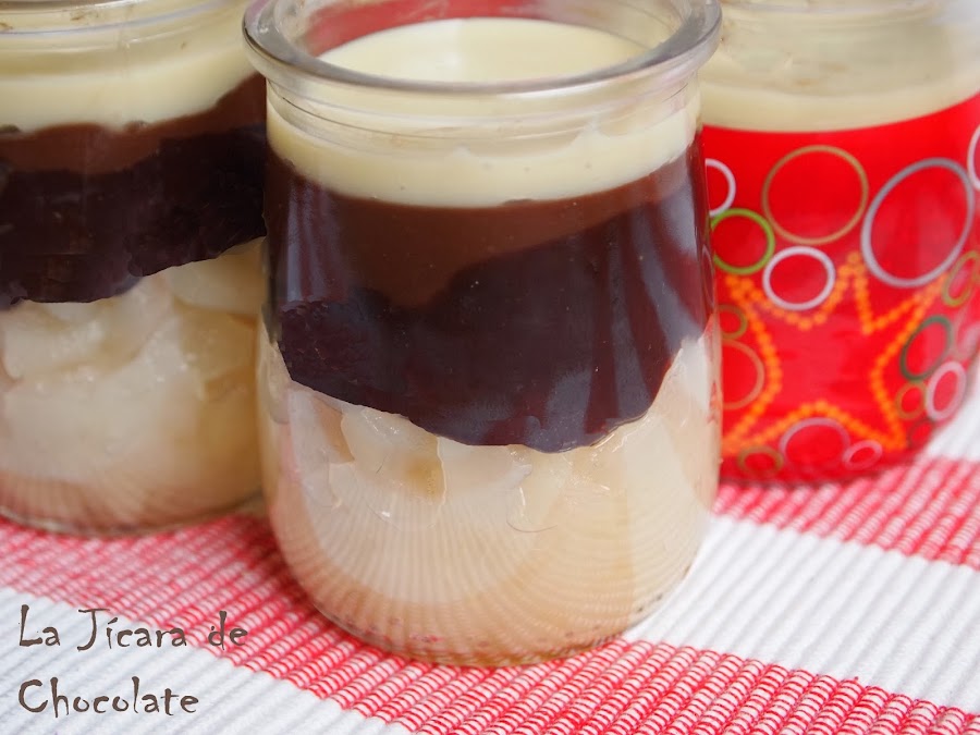 Las cantidades hay que ajustarlas al tamaño de los vasitos que utilicemos. Yo he usado tarritos de cristal de yogures.