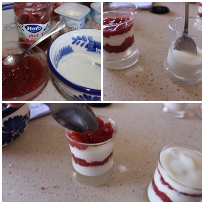 Por eso estos vasitos de yogur con mermelada light, son ideales, tiene pocas calorías, pero sí que nos quitan el deseo de tomar dulce...