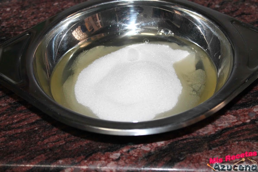 Continuamos poniendo las claras junto con el azúcar al baño maría para que se disuelvan el azúcar, esto lo haremos sin dejar de remover.