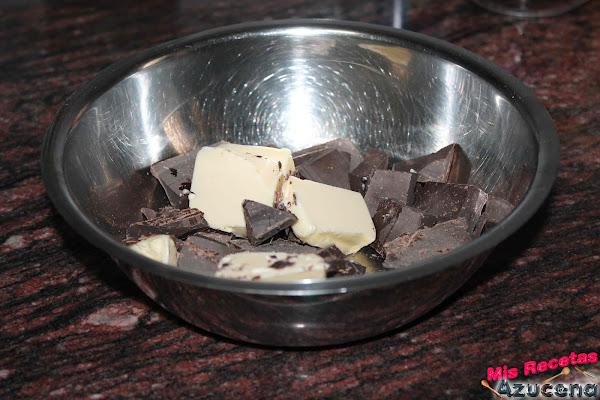 Lo primero que haremos en esta receta será derretir el chocolate junto con la mantequilla al baño maría.