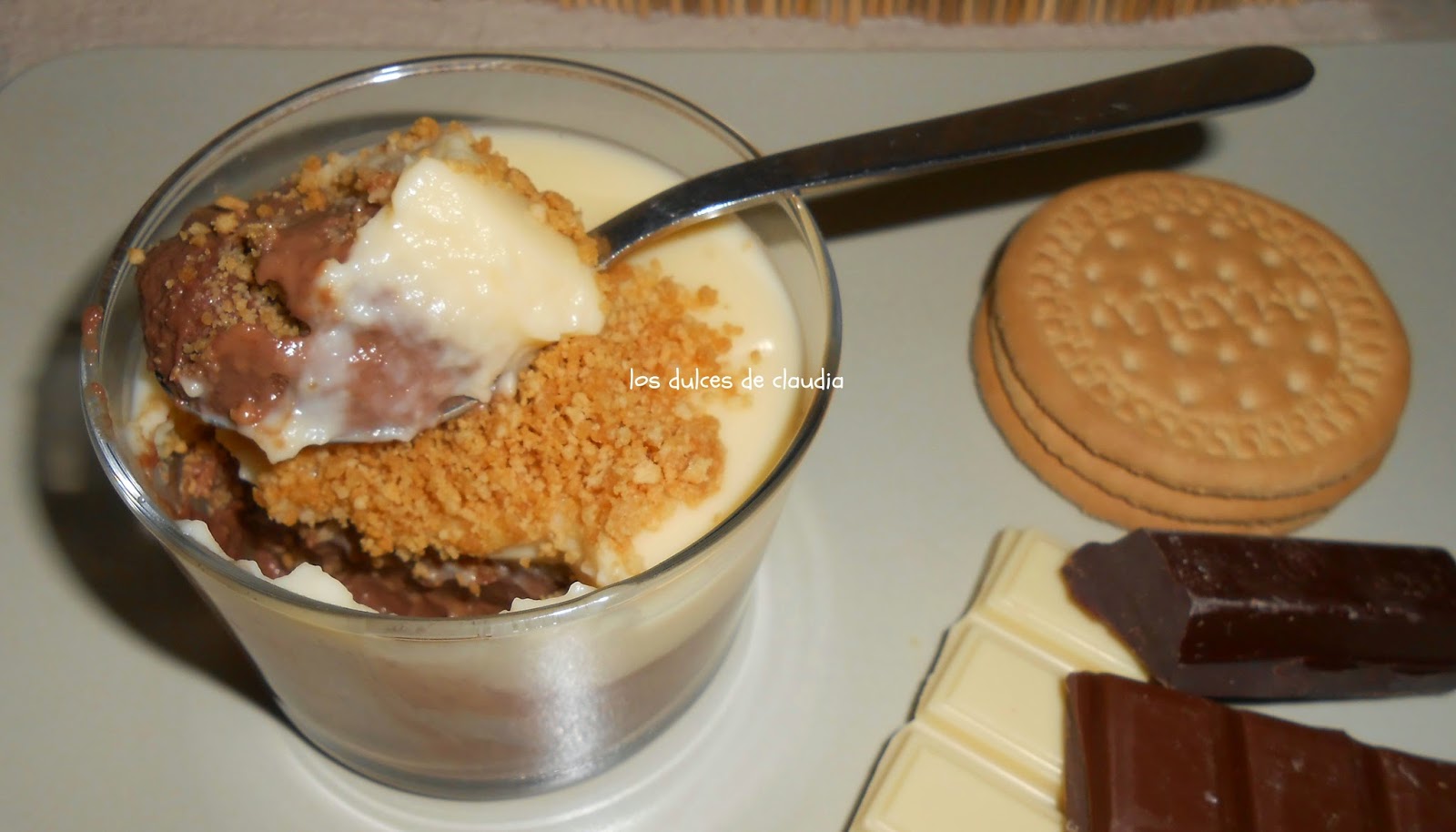 Llenar los vasitos con cada capa de chocolate refrigerando previamente cada una.