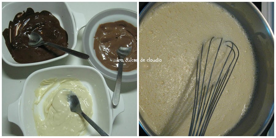 Disolver los tres chocolates.(Lo hice en el microondas)