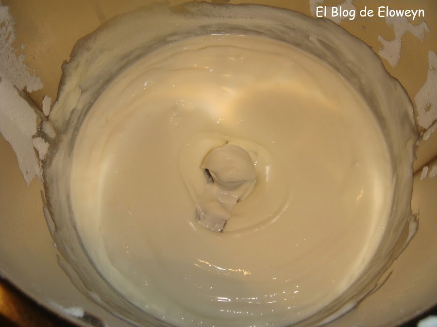 Os quedará una crema un poco líquida. Esto es porque se ha batido. Necesitamos que esta crema espese un poquito. Para ello, pondremos la crema en una manga pastelera.