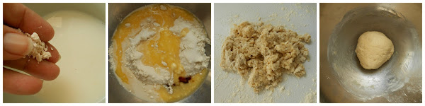 Luego ponemos eun un bol todos los ingredientes y mezclamos hasta unir bien. Volcamos la mezcla en la encimera enharinada y amasamos hasta obtener una masa suave que no se pega a los dedos. Engrasamos con aceite un bol, colocamos la masa allí, la cubrimos con papel film y la dejamos descansar durante 1 hora a temperatura ambiente.