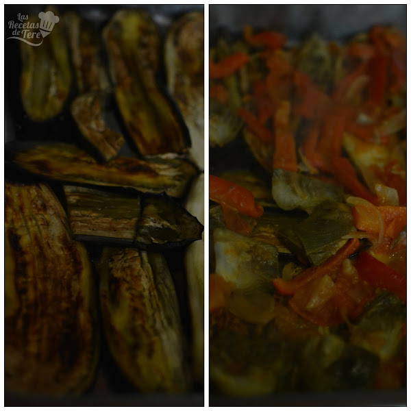 Mientras se asan las berenjenas, corta en juliana los pimientos y los tomates y lo pones a rehogar al menos 15 minutos con un poco de aceite de oliva, agrégale las alcachofas que previamente has preparado y une bien todo y agrega sal a tu gusto. Ahora saca las berenjenas y en otro molde, arma tipo lasaña, por capas, haces primero una cama con ellas, le agregas un poco de la mezcla de vegetales, luego otra capa de berenjenas y otra capa de mezcla de los vegetales, mete todo al horno de nuevo por unos 10 minutos, saca, deja reposar 2 minutos mas y sirve, verás que rico y además sanísimo!! Yo le puse un poco de queso parmesano por encima para que gratianara.