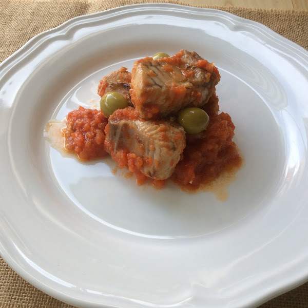 Cuando esta finalizado, podemos servirlo, con aceitunas o simplemente con un perejil picadito por encima.