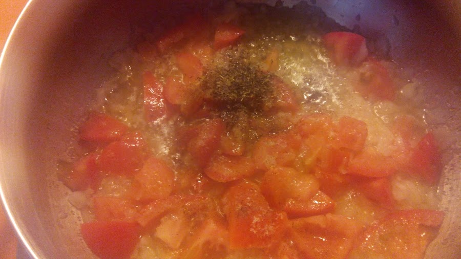 Dejamos otros cinco minutos y añadimos una cucharadita de tomillo, sal, pimienta y un poco de azúcar para la acidez del tomate.