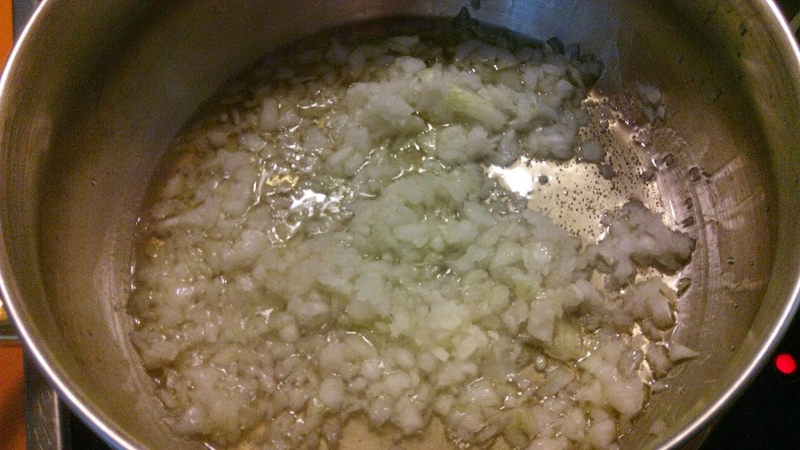 En un cacerola amplia calentamos un chorreón de aceite y sofreímos la cebolla picada.