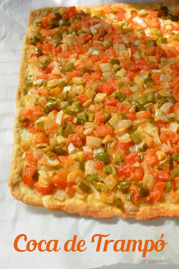Hoy os dejo una receta muy típica de la tierra de mi marido, una coca de trampó, a base de tomate, cebolla y pimiento. Buenísima manera de comer verdura y, además, sencillisima de preparar. Además, podéis hacerla con antelación, por que está mucho más buena fría.