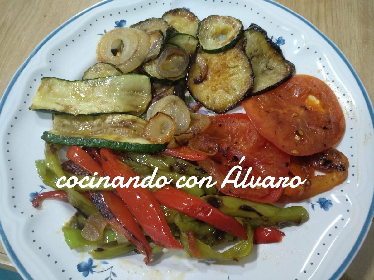 Sazonamos todas las verduras, y en una plancha, añadimos un chorro de aceite de oliva.