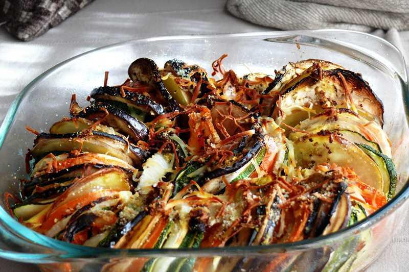 Esta receta recibe su nombre de la fuente en la que se cocina, tian, una fuente ovalada de barro o cerámica en la que se colocan las verduras cortadas en rodajas, que también suelen ser más o menos fijas, calabacín, cebolla, tomate, aunque admite las verduras que más os guste o que tengamos en casa. Estas verduras al horno se suelen añadiendo una combinación de hierbas para aromatizar el plato y un poco de parmesano rallado sobre las verduras, que en el horno se fundirá y tostará.
