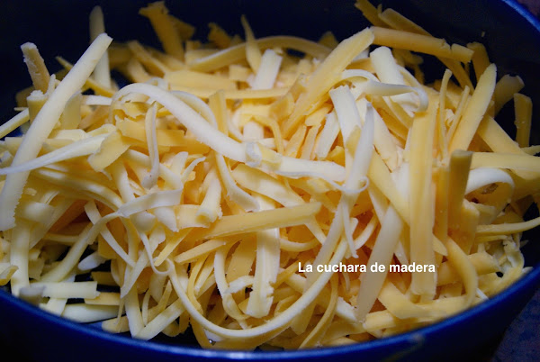 Lo metemos en el horno unos 25 minutos a 170 grados tapado con papel de aluminio.Rallamos los dos quesos, en casa ponemos poco ya que sino es menos sana; la cantidad es a gusto.