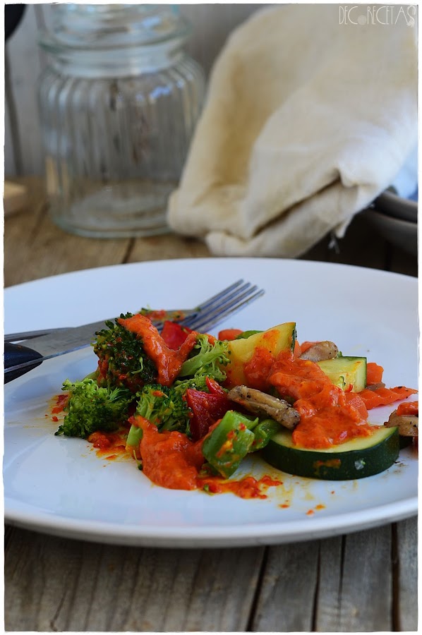 Es una receta muy versátil, puesto que yo la realice con verduras al vapor que tenía por la nevera, y se puede realizar con las que vosotros tengáis por casa de igual manera. Lo qué si tenéis que hacer es la salsa porque es muy sencilla y aporta ese toque que le falta a las verduras cocidas