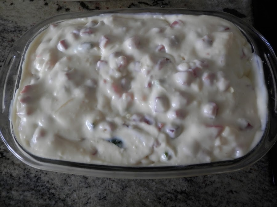 Ponemos encima la bechamel en la que habremos mezclado previamente el jamón.