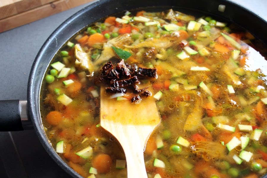 Dejamos cocer, 10 minutos más. Si falta caldo, añade un poco de agua y rectifica de sal.
