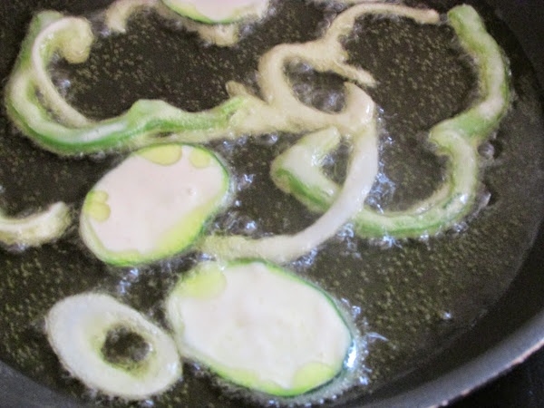 Ponemos el aceite a calentar y vamos friendo las verduras con el aceite caliente