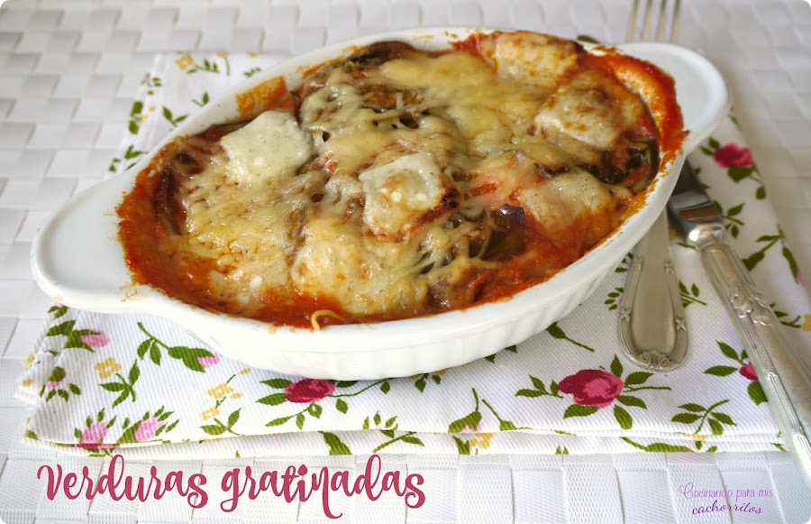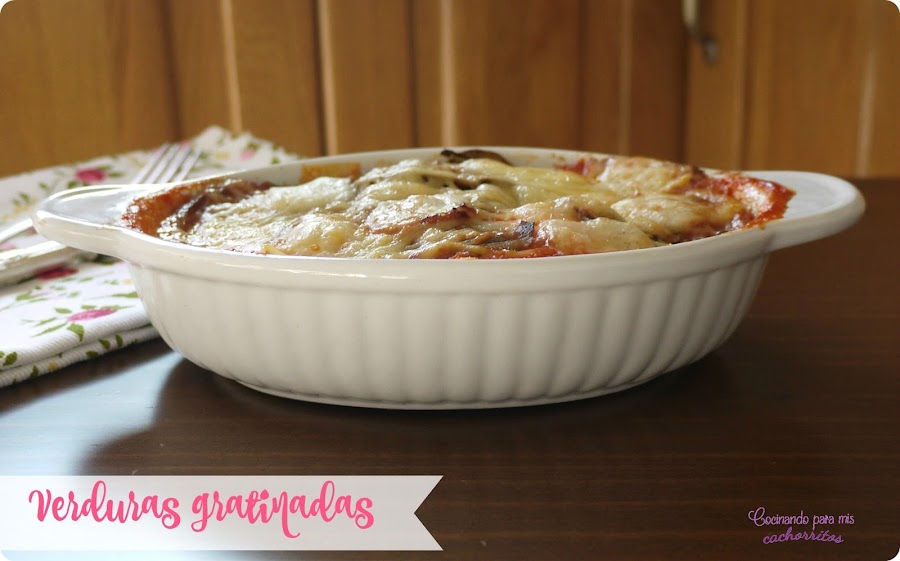 Para esas ocasiones me encanta convertirlas en una especie de pastel de verduras que esta vez he llamado simplemente verduras gratinadas aunque lo que se gratina es sólo la capa superior.