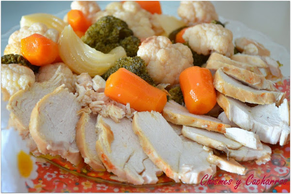 Ya tenemos lista nuestra receta, te recomiendo que la hagas de un día para otro coge mucho más sabor del escabeche, ahora ya puedes comer todo junto o por separado como prefieras. Las verduras están muy ricas para acompañar cualquier plato de pescado o de carne y el pollo está muy bueno en ensalada. Así que si quieres puedes poner más pollo para aprovecharlo para hacer otras recetas.Espero que te haya gustado, besines y feliz día.