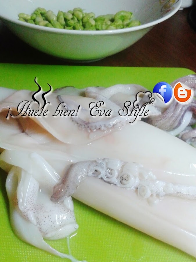 1.- Limpiamos los calamares, retirando la piel, las vísceras, la pluma, los ojos y el pico. Lavar bien por dentro y por fuera...( O bien en la pescadería pedimos que nos lo limpien, yo compre uno, que luego me limpiaron).