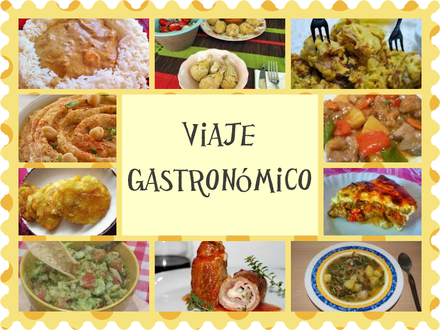 Así que si queréis hacer un viaje gastronómico sin salir de vuestra cocina....aquí os dejo las propuestas de mis compañeros, pinchando sobre el nombre del plato os llevará directos a sus blog para que veáis la receta.