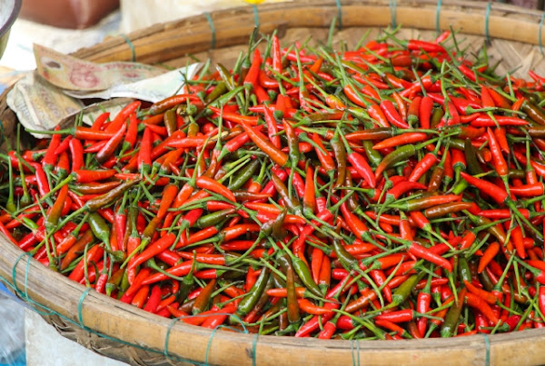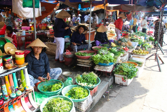 Como la mayoría de las clases de cocina que tomé, ésta partía con una visita por el mercado local, donde pudimos darnos cuenta de la gran variedad de vegetales y hierbas frescas que se venden por todos lados, una verdadera explosión de colores y tonalidades!