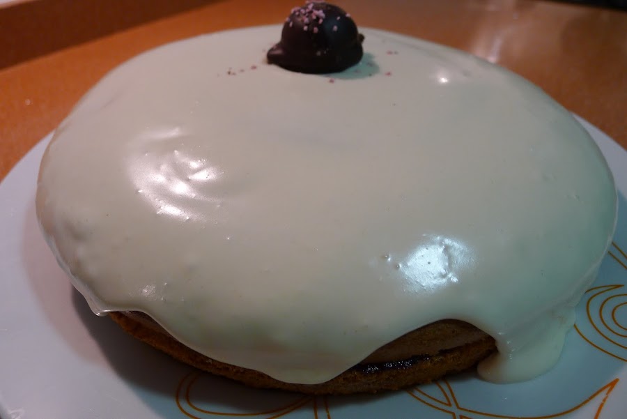 Como de costumbre,lo tunee un poquito,de relleno solo le puse mermelada, y lo cubri con frosting de queso y vainilla,es la primera vez que experimento con cremas de este tipo y la verdad es que sali bastante contenta,la crema es una maravilla,nada pesada y al no llevar demasiada mantequilla ,queda un sabor suave y delicioso,la aromatice con vainilla liquida,pero la podeis dejar tal cual o añadirle cualquier otro sabor. La receta la encontre en Biscayenne:para golosos irredentos,ella la llama la crema pluscuamperfecta y tiene toda la razon!