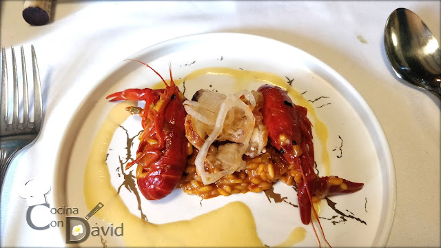Continuamos con "La memoria". Un arroz Niral cremoso y sabroso con el punto de cocción perfecto, acompañado de cangrejos de río y pollo. Un arroz sabroso, en el se aconseja mancharse las manos para comer los cangrejos y disfrutarlo. La mezcla de sabores de nuevo casan muy bien, muy rico.