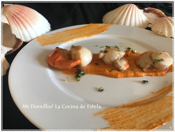 Entre todas las recetas de este Chef, desde el principio me encanto esta, ya que las Vieiras me chiflan y suelo comprar en verano cuando hay, limpiarlas y congelarlas. Así que cuando vi esta receta de nuestro chef, tuve claro que quería probarla por lo que he sido fiel a su receta, solo he cambiado cantidades pues aun asi, me han salido dos tarros de salsa Romesco.